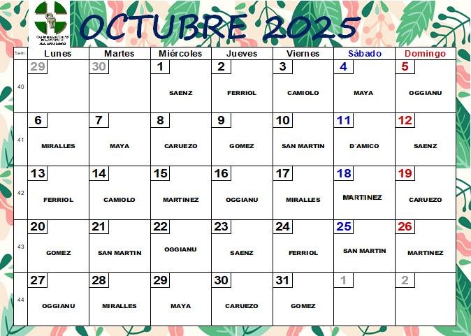 *Los turnos comienzan a las 8.30am del día indicado finalizando a las 8.30am del día siguiente.