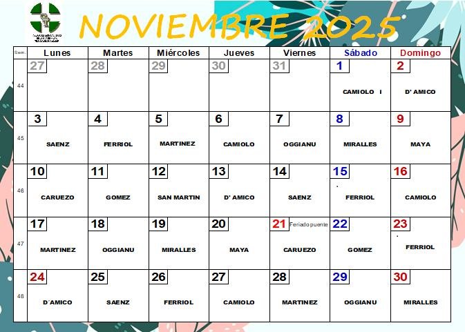*Los turnos comienzan a las 8.30am del día indicado finalizando a las 8.30am del día siguiente.